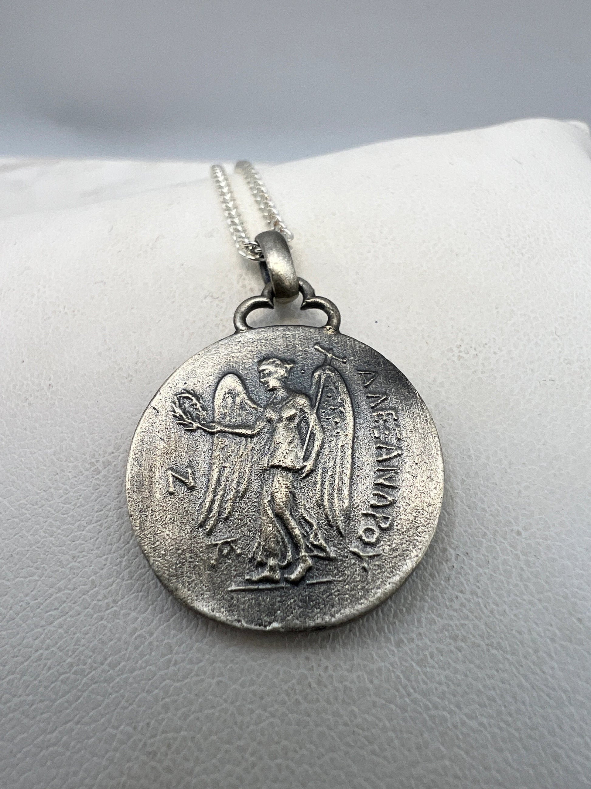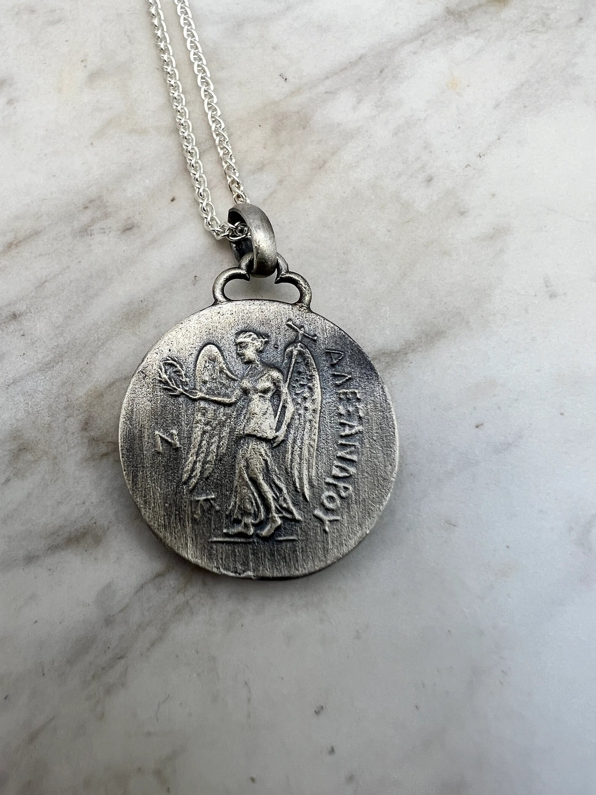 Athena Nike goddess Alexander the great Ancient Coin copy pendant sterling silver 22 mm