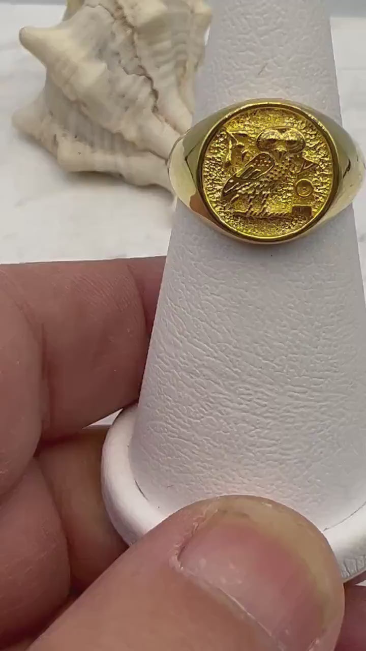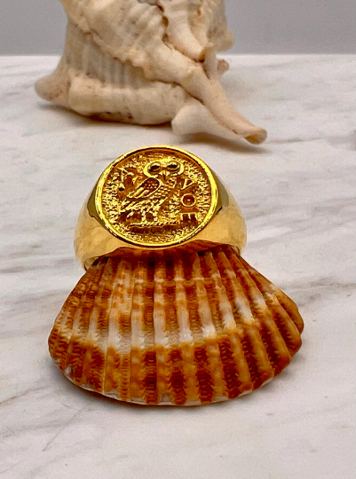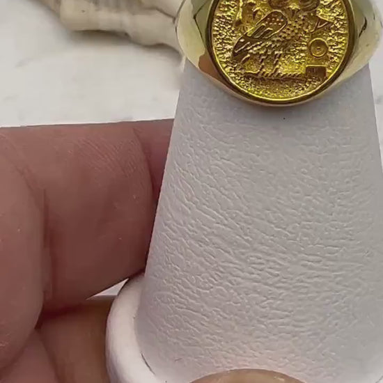 Athena owl Signet ring ancient Greek coin copy silver gold