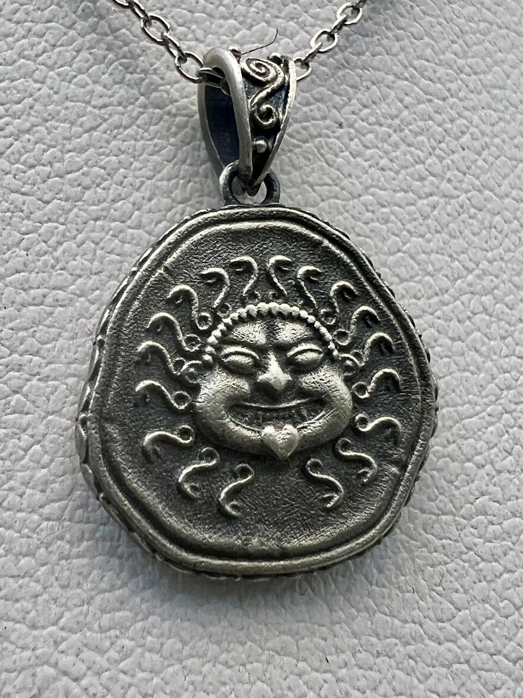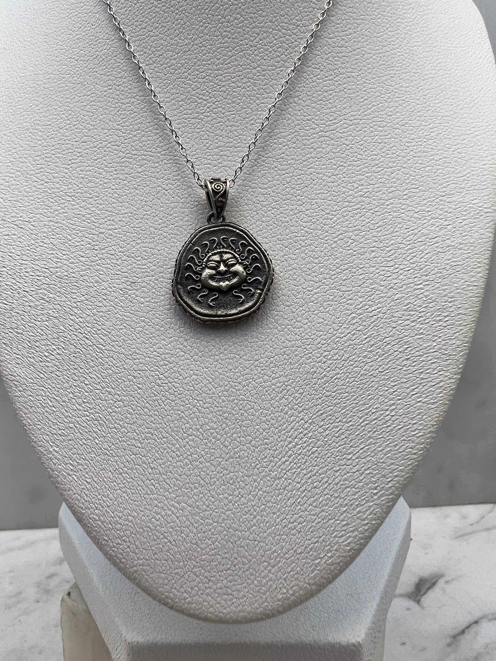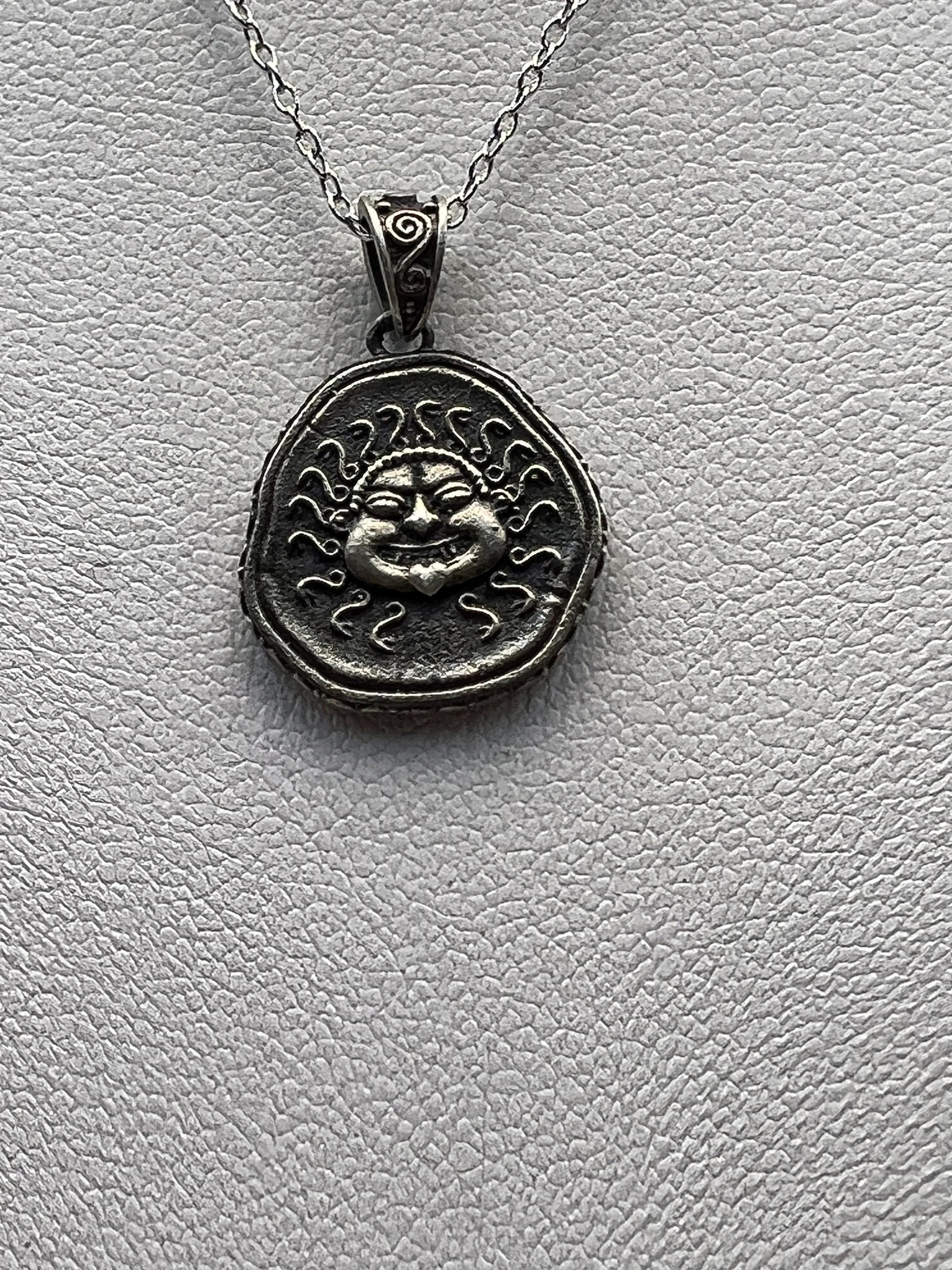 Méduse Gorgone protectrice pièce de monnaie grecque antique pendentif en argent sterling