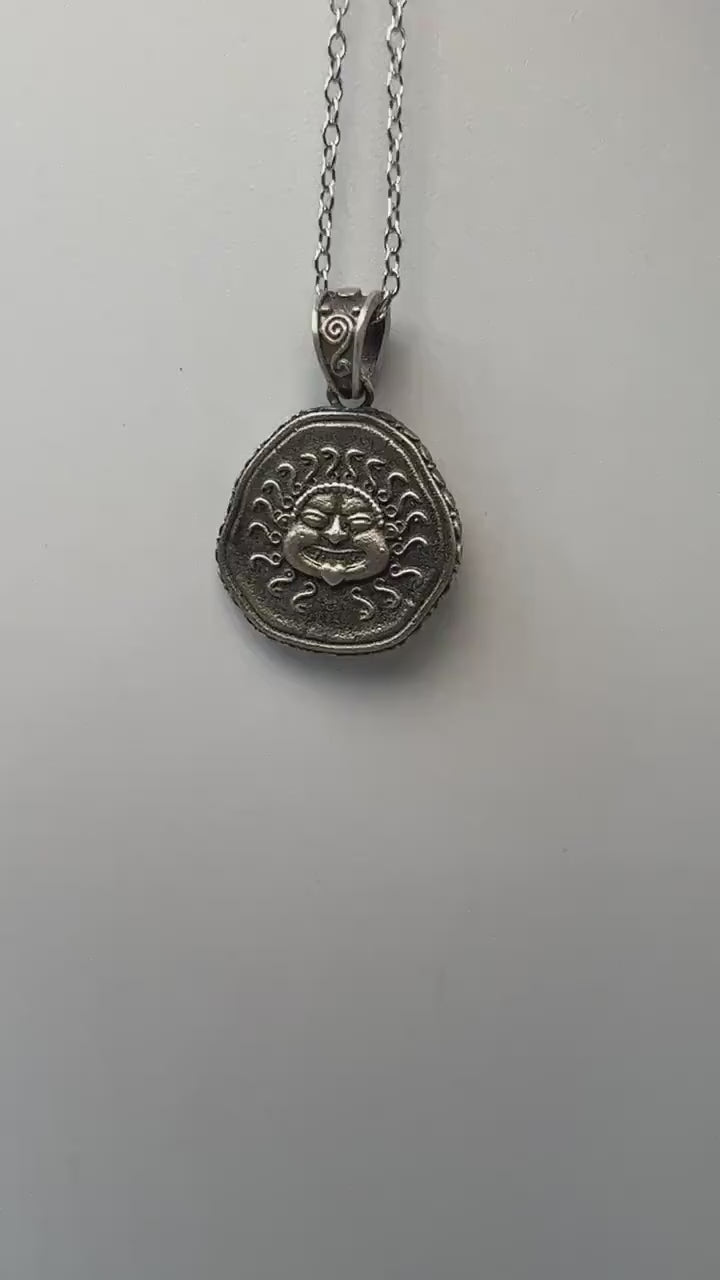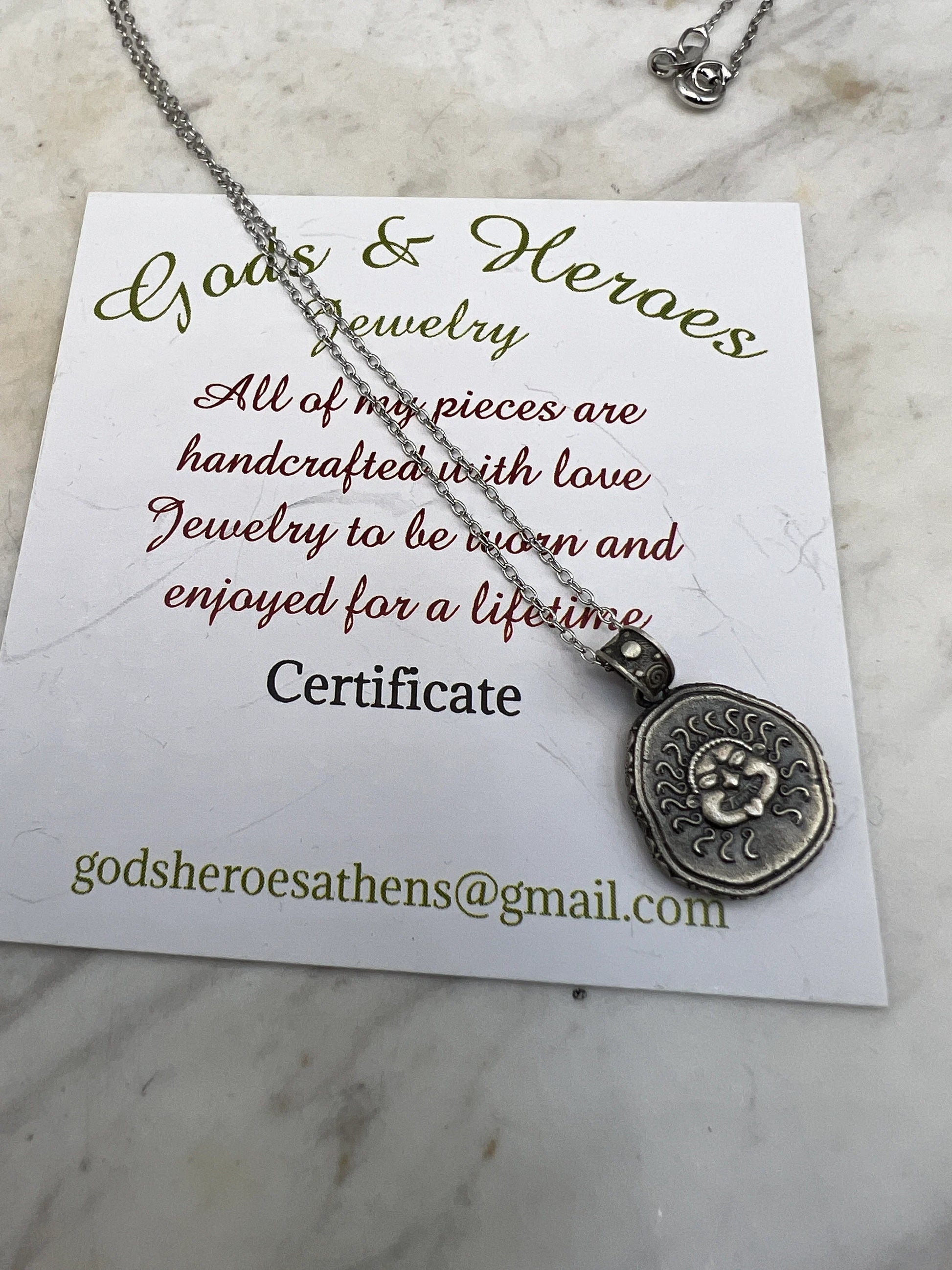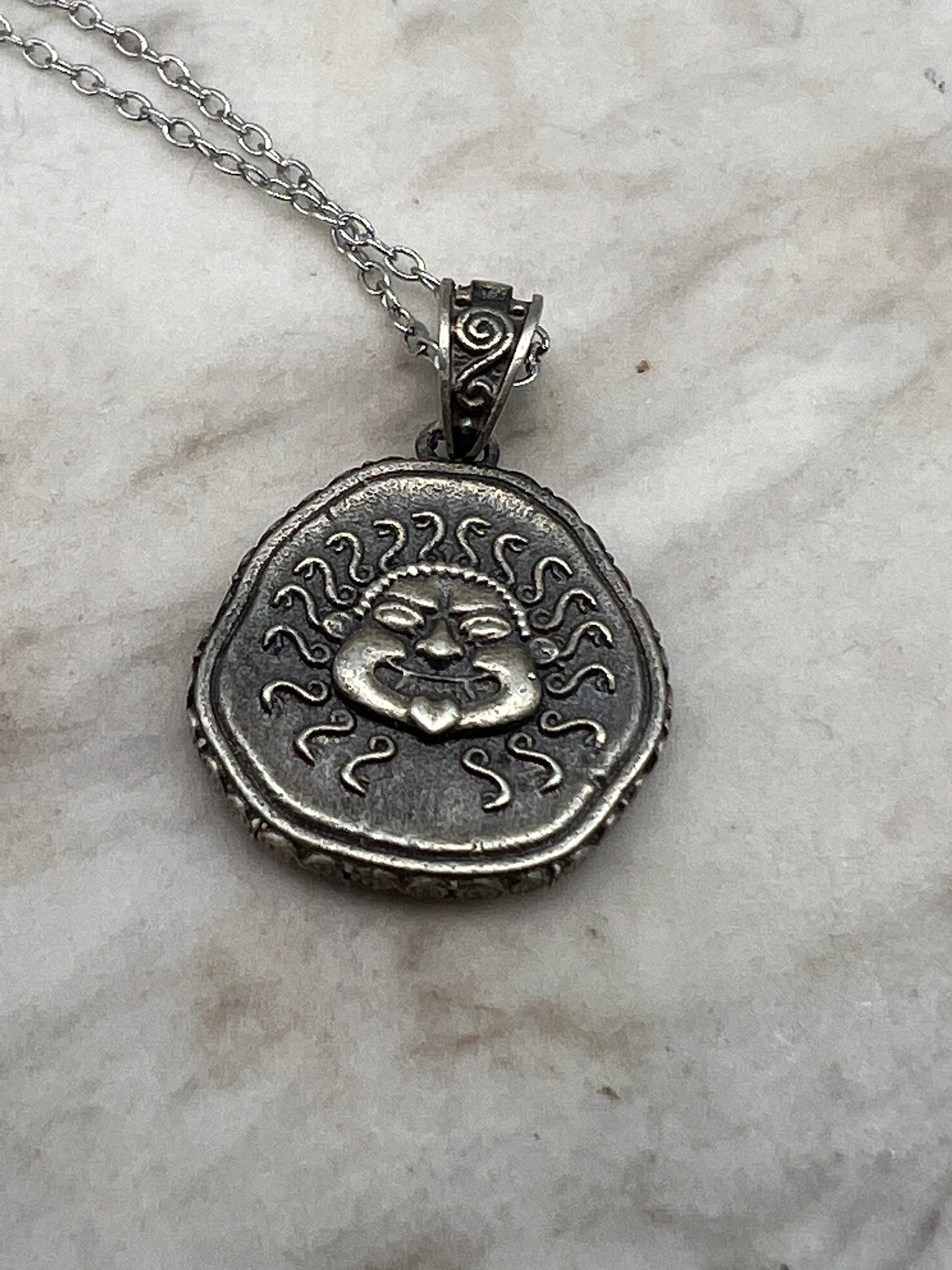 Méduse Gorgone protectrice pièce de monnaie grecque antique pendentif en argent sterling