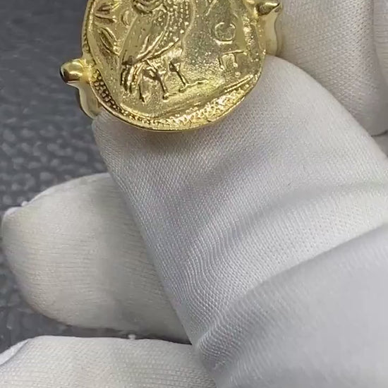 Hibou de la déesse Athéna pièce de monnaie bague en argent sterling 925
