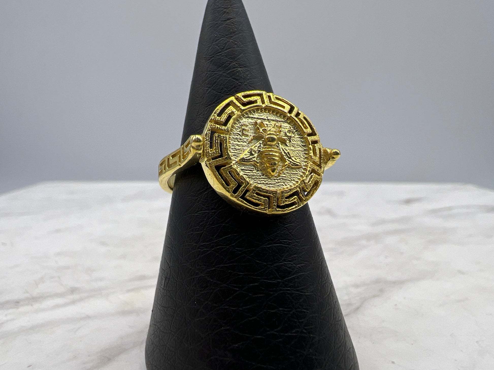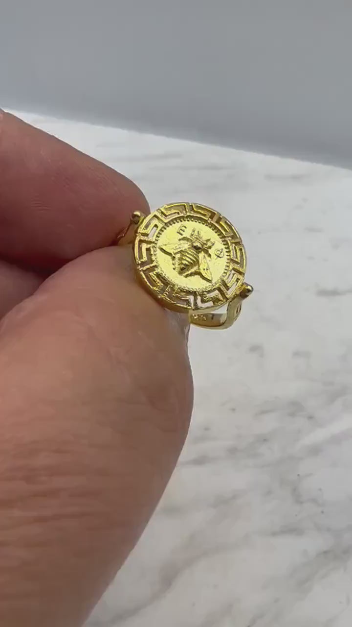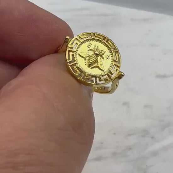 Artemis Goddess Ancient Greek Sacred Bee Greek key Meander Coin Ring