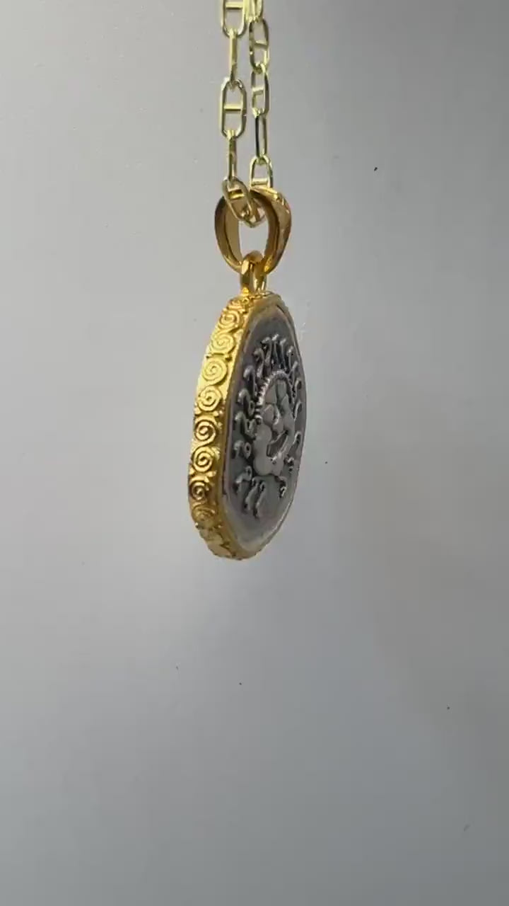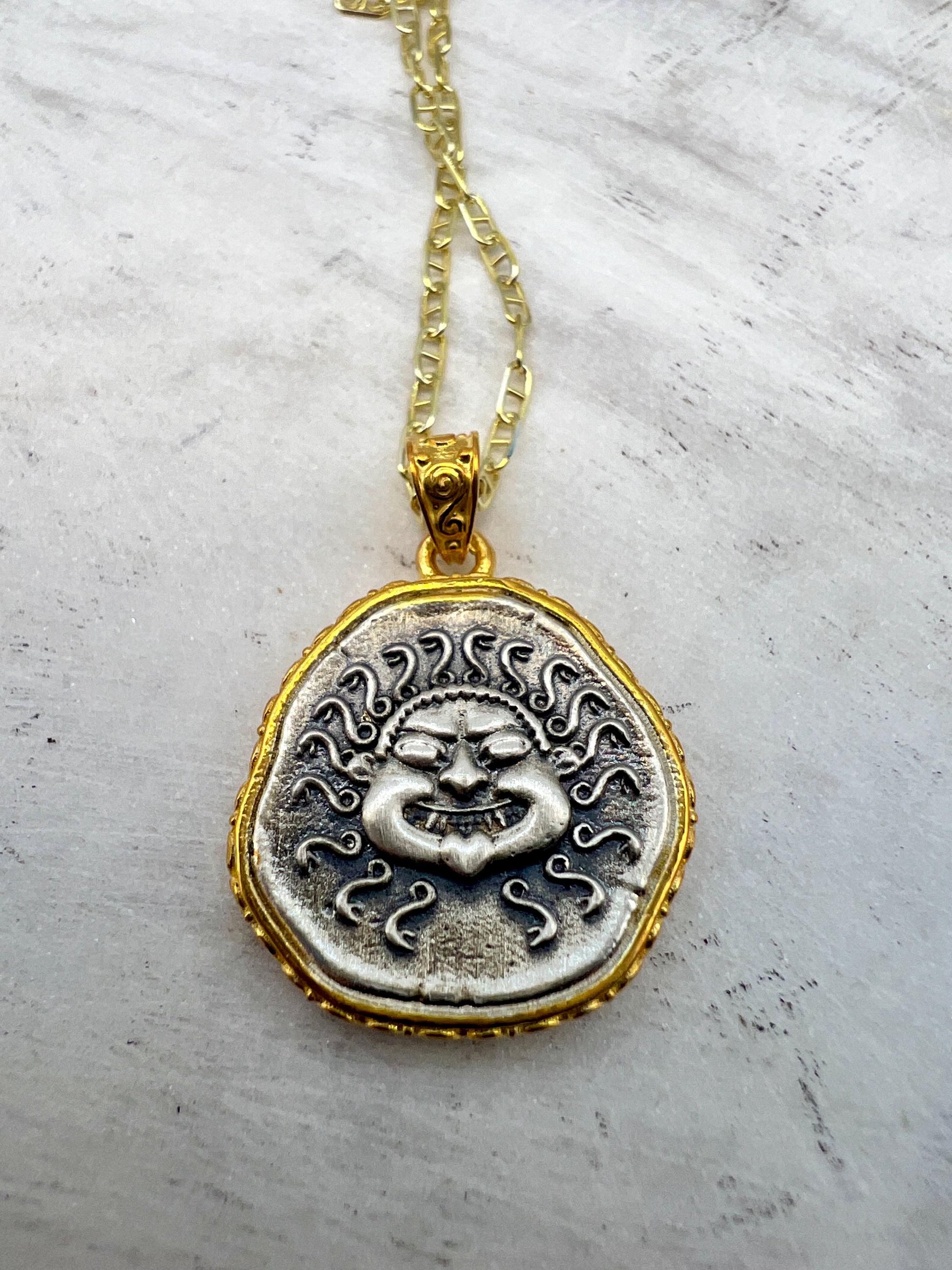 Medusa Gorgon Protective Coin Pendant Sterling Silver 925 with Gold Plating