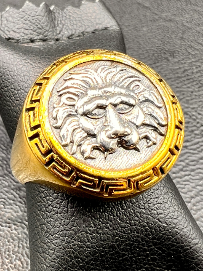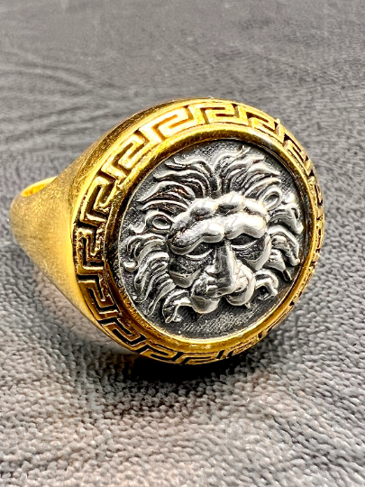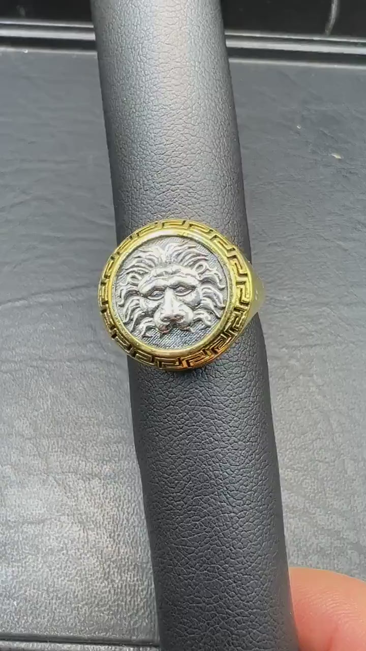 Nemean Lion Hercules ancient Greek coin Signed ring Sterling Silver Gold plated